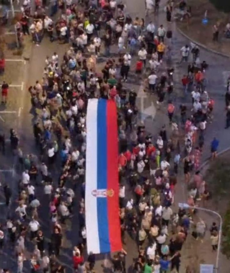 Preko 400 građana Kikinde ustalo je da brani svoje domove od blokadera. Oni su izneli na ulice veliku zastavu Srbije.