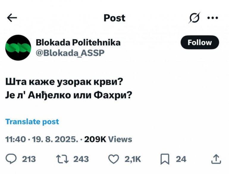 - Šta kaže uzorak krvi, Jel' Anđelko ili Fahri? - poručili su sramno blokaderi.