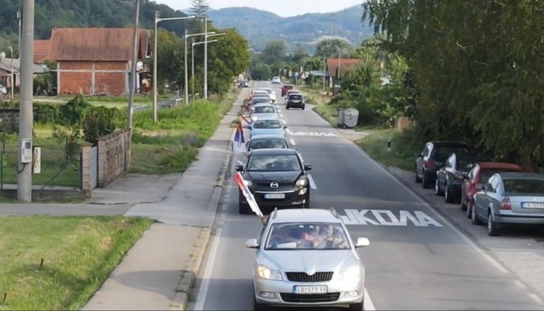 Iz automobila se vijore srpske trobojke.