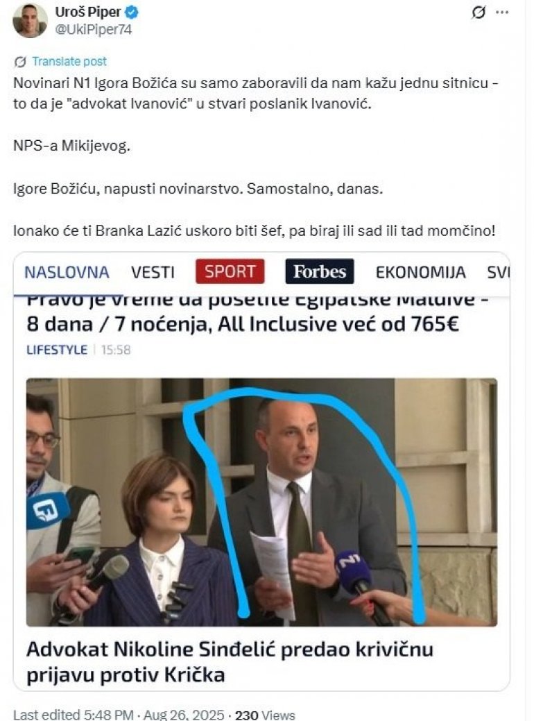 -Novinari N1 Igora Božića su samo zaboravili da nam kažu jednu sitnicu - to da je "advokat Ivanović" u stvari poslanik Ivanović.