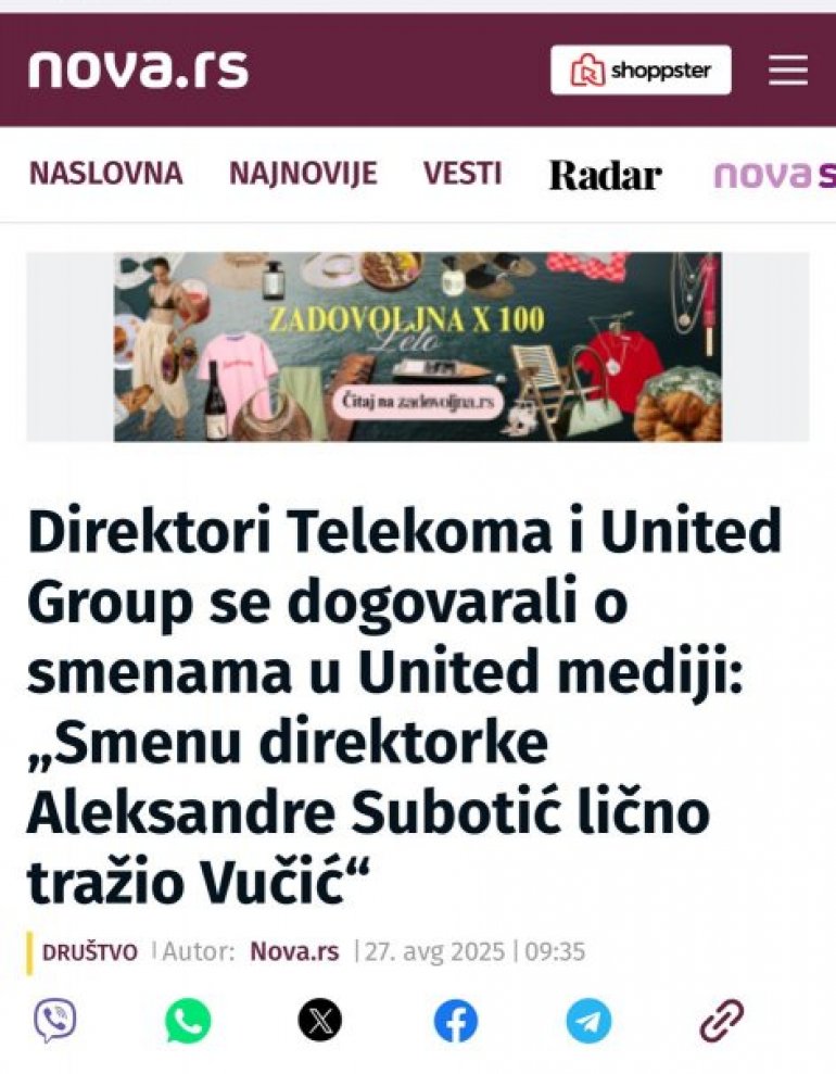 Bez obzira na izveštaj u kojem se jasno ističe da nema dokaza za ovakve tvrdnje, Nova S i N1 i dalje objavljuju naslove da su direktori Telekoma i Junajted grupe dogovarali smene u Junajted mediji i da je smenu direktorke Aleksandre Subotić tražio lično Vučić!