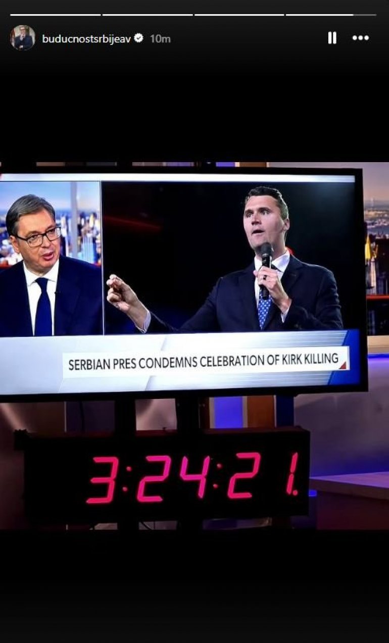 - Srbija je država gde predsednik SAD ima jako veliku popularnost, nema zemlje koja je blizu tome. Naravno, ne možemo se slagati oko apsulotno svega što on govori, ali hoću da prikažem atmosferu koja je u našoj zemlji i zašto je odjeknula vest o ubistvu Čarlija Kirka - izjavio je Vučić za Njuzmaks.