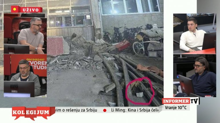 - Naknadnom analizom fotografija su advokati odbrane tražili objašnjenje i tražili naknadno veštačenje. Međutim, to su sve blokaderi na Fakultetu tehničkih nauka (FTN) i mnogi od njih nemaju ni licencu. Pa su rezultati veštačenja bili da je uređaj samo nestao. Tvrde da ga nema tamo na tom nekom stovarištu gde se nalaze ostaci nadstrešnice - rekao je glavni urednik Informera, pa pokazao i dokument iz istrage u kom se spominje nestanak uređaj.