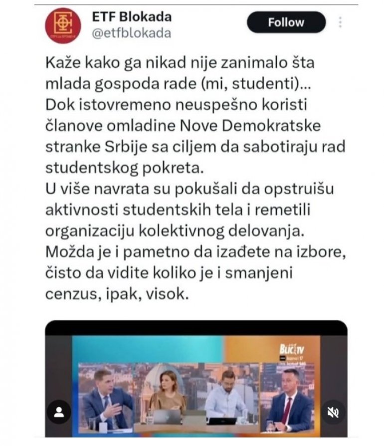 SUKOB između studenata blokadera i opozicionih partija NDSS-POKS dobio je novu dimenziju.