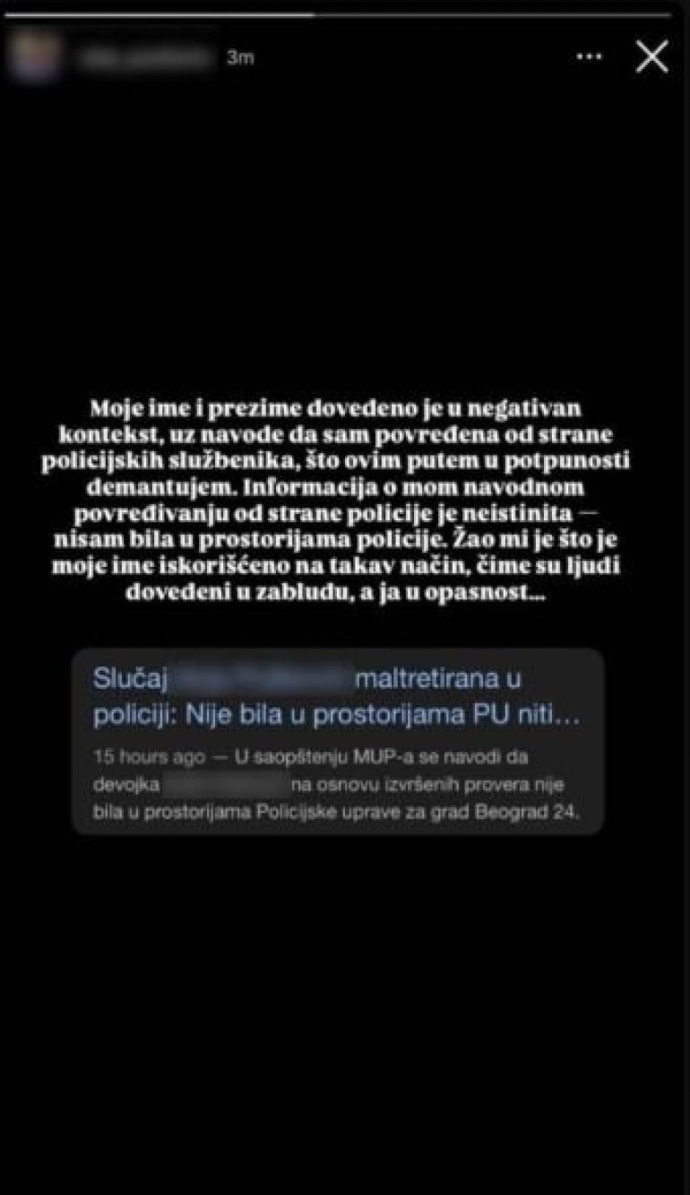 Prema njegovim rečima, A. P. niko iz policije nije zvao, to jest niko nije uticao na nju da da demanti.