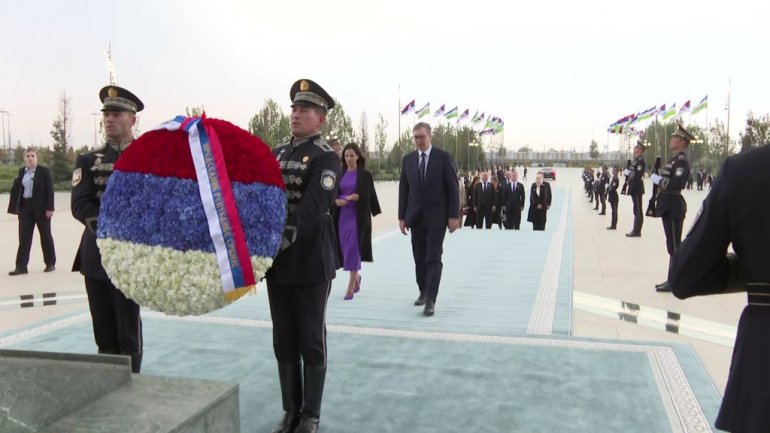 PREDSEDNIK Srbije Aleksandar Vučić položio je danas venac na Spomenik nezavisnosti u parku "Novi Uzbekistan" u Taškentu.