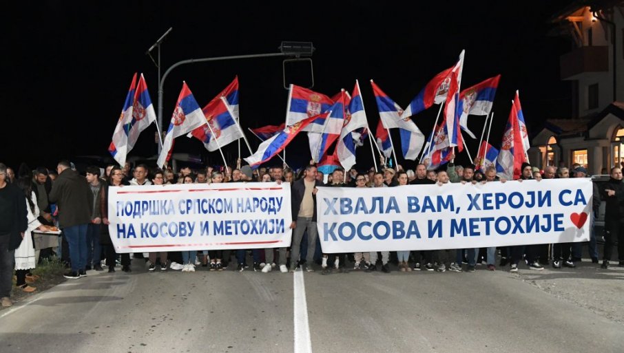 Oni su nosili transparente na kojima piše - Podrška srpskom narodu sa Kosova i Metohije i Hvala vam heroji sa Kosova i Metohije!