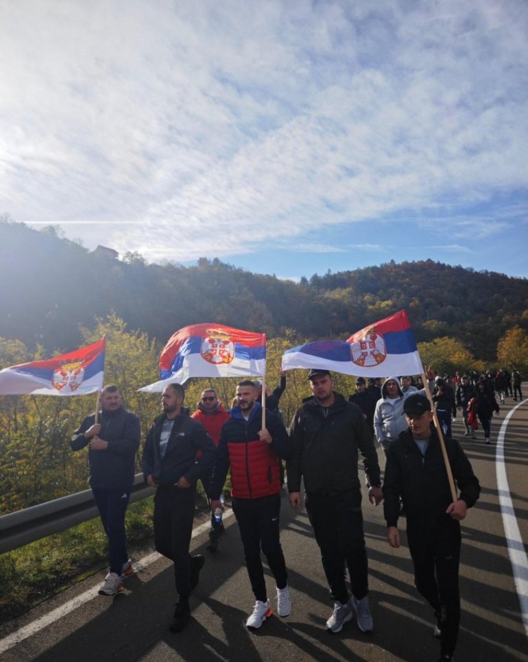 Kolona je danas nastavila put Kraljeva, prati ih lepo vreme, a uz put se ori pesma “Ja sam momče sa Kosova”. Plan je da za desetak dana zajedno stignu na veliki narodni skup protiv blokada u Novom Sadu.