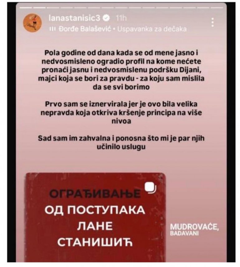 Studentski pokret je naveo njene uvrede na račun Srba i Srbije („Serem ti se u tvoju Srbiju“, „srpska g*vna“) i pita da li takva osoba može predstavljati borbu za Srbiju.