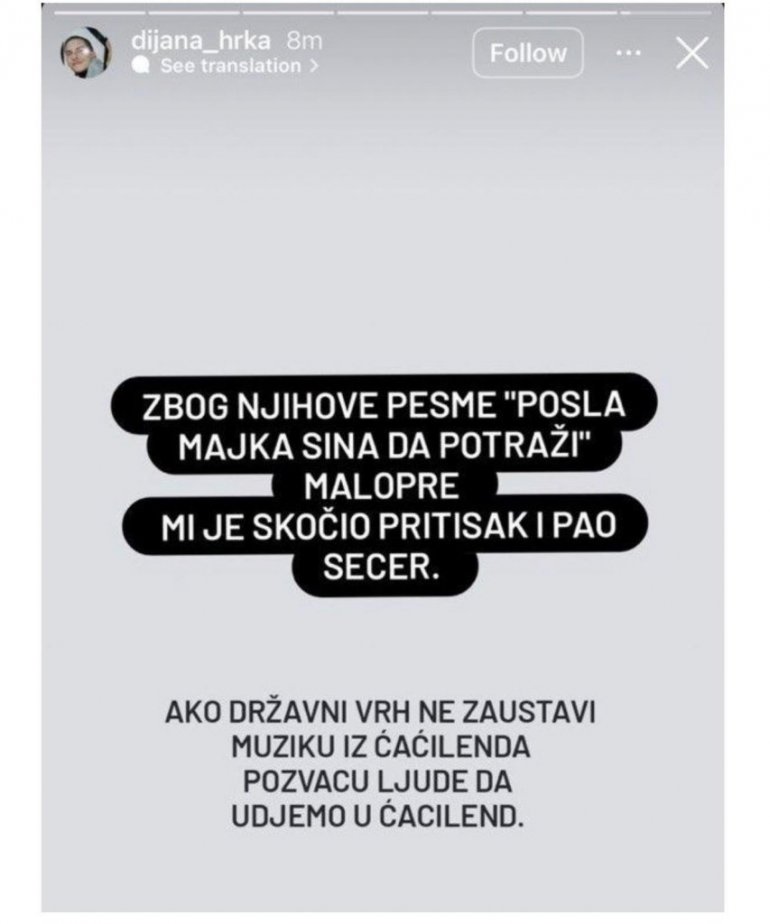 Dijana je objavljivala pozive na oružane sukobe („poziv na treći skup“, „Nepal“, „naoružavanje Srbije“) i pretile krvoprolićem („biće krvi do kolena“).