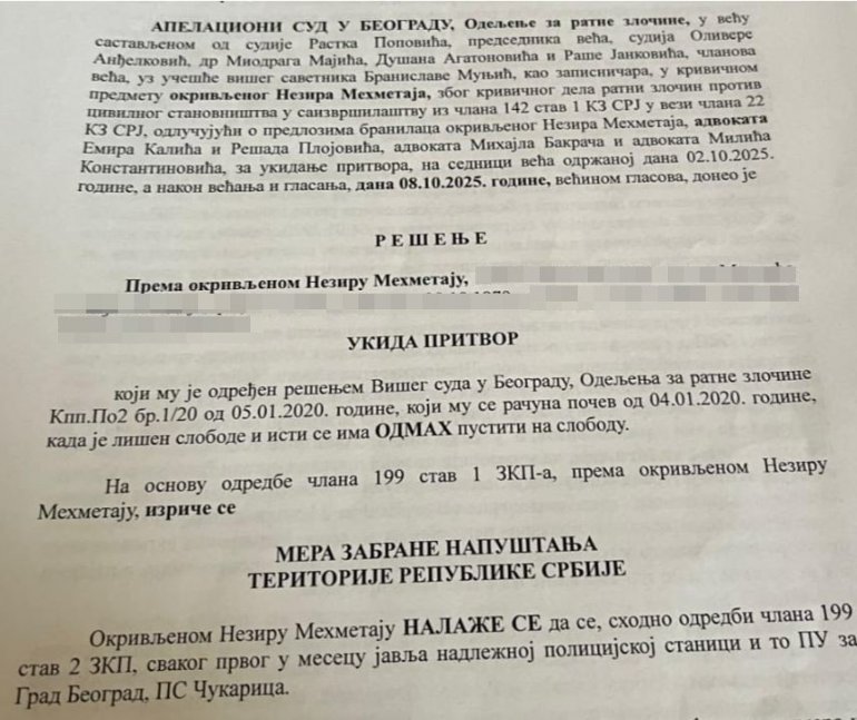 MAJIĆ OPET PETLJA SA ZLOČINCIMA: Blokaderski sudija pustio Nezira Mehmetaja