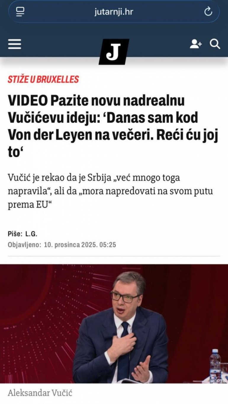 Dakle, dok Vučić koji je prepoznat kao čovek pomirenja u regionu, koji podstiče prosperitet i uspehe svih, daje sjajnu ideju, Hrvati odmah na sva usta "zvone" da su protiv jer bi ulazak svih drugih u regionu u EU razbio njihov lažni, nezasluženi ekskluzivitet.