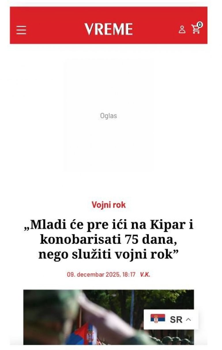 BOLESNA, AUTOŠOVINISTIČKA I ANTIDRŽAVNA KAMPANJA "VREMENA": Dok cela Evropa uvodi vojni rok, oni šalju mlade na Kipar