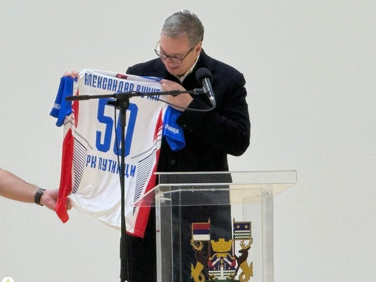 Po završetku govora dobio je poklon iznenađenja od mešata Puninaca i lokalnog rukometnog kluba.