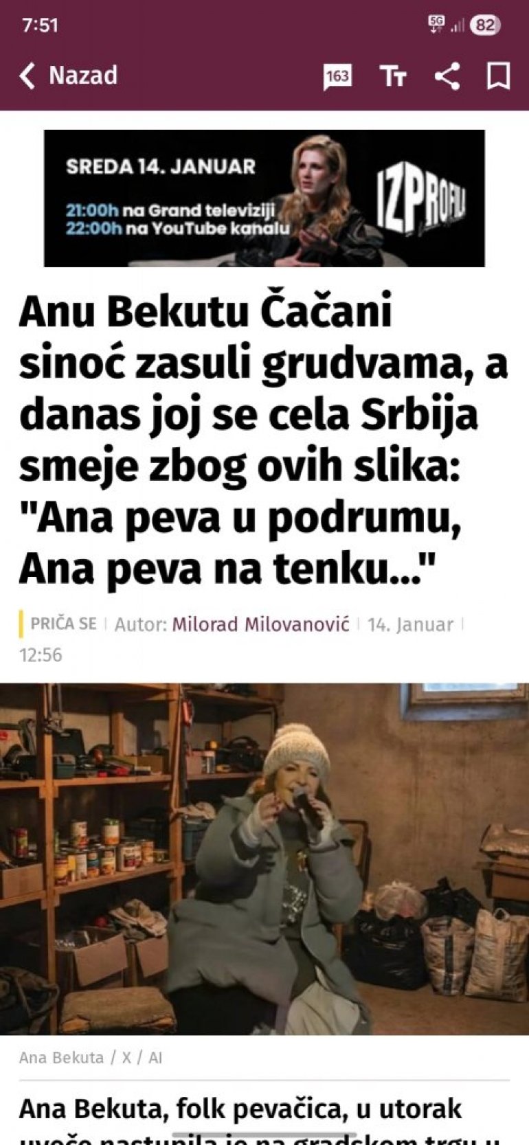 Ovaj put blokadersko razbojničko ponašanje prevršilo je svaku meru. Na blokaderskom portalu "Nova" bez imalo trunke i srama objavljena je njena fotografija uz bestidno izrugivanje "Ana peva u podrumu, Ana peva u tenku"...