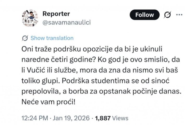 BLOKADERI IZ BIVŠE VLASTI NAJAVILI BORBU ZA OPSTANAK: Boriće se protiv blokadera "studenata" - optužuju ih da rade za Vučića