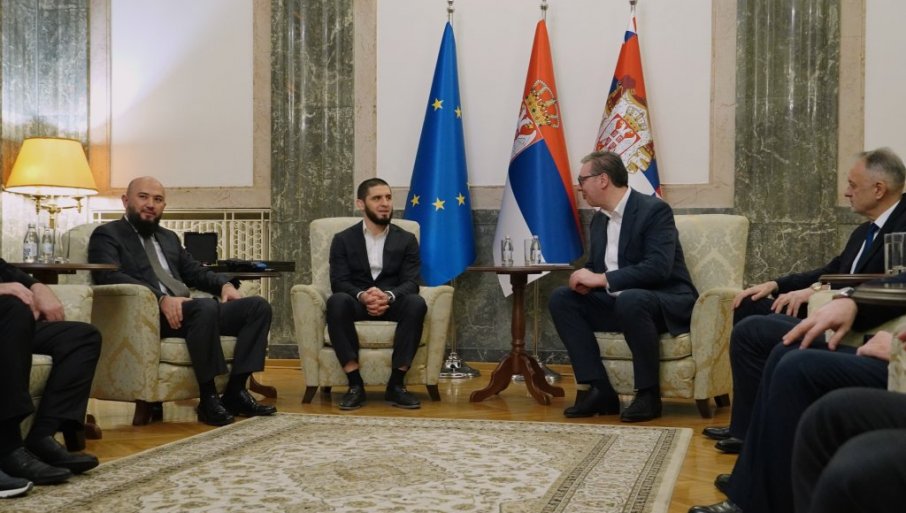 PREDSEDNIK Srbije Aleksandar Vučić primio je danas u Beogradu MMA borca Islama Mahačeva.