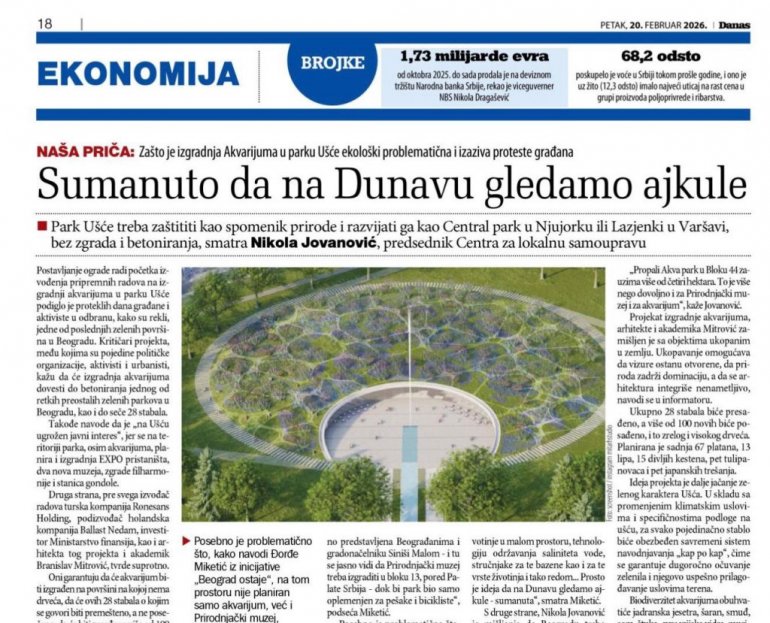 NAKON novog nasilja blokadera, kada su upali na gradilište na Ušću u Beogradu, protestujući zbog izgradnje akvarijuma, počelo je i pokrivanje od strane blokaderskih medija, koji opravdavaju rušenje ograde i nasrtaje na policiju - ekološkom problematikom. Posebno je problematična, kako kažu, izgradnja Prirodnjačkog muzeja?!
