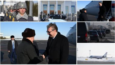 - Zahvalan premijeru Olžasu Benktenovu na srdačnom dočeku i srećan što ću se sastati sa velikim ličnim i prijateljem Srbije, predsednikom Tokajevim sa kojim ću razgovarati o svim bitnim pitanjima od značaja i interesa za Srbiju i Kazahstan - napisao je Vučić po sletanju u Astanu.