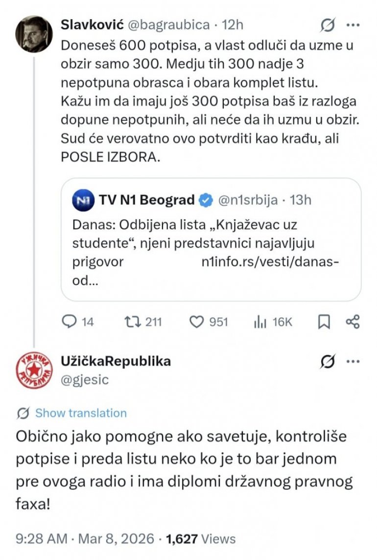 NAKON debakla blokaderske liste u Knjaževcu, društvena mreža X vri od kukanja zgubidana.
