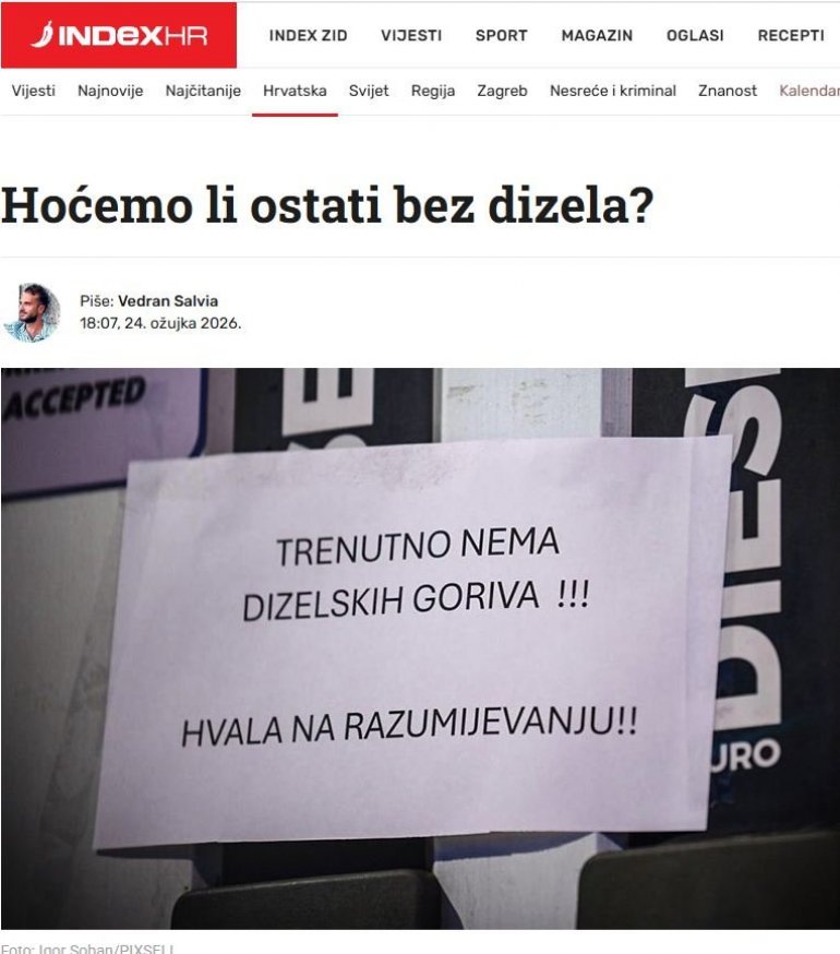 Hrvatski portal Indeks objavio je danas tekst u kome se pita "Hoćemo li ostati bez dizela?", što jasno pokazuje koliko je situacija kod komšija ozbiljna.