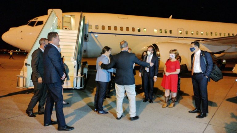 Grenel i predstavnici DFC sleteli su oko 21.40 sati na beogradski aerodrom "Nikola Tesla", gde ih je sačekala premijerka Ana Brnabić, kao i američki ambasador u Srbiji Entoni Godfri.