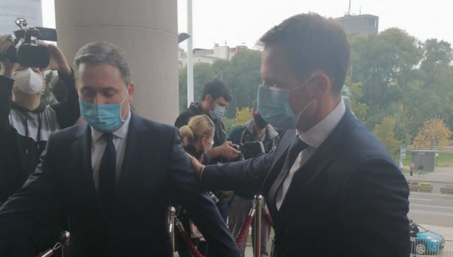Dok je čekao premijerku Dačić se pozdravio sa Krkobabićem i Vanjom Udovičićem.