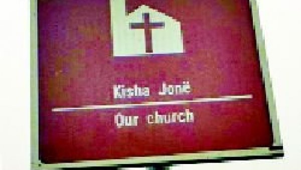 U BLIZINI ostataka pravoslavne crkve u selu Suvo Grlo kod Srbice nepoznati počinioci postavili su znak na kojem, na albanskom i engleskom jeziku, piše "Naša crkva".