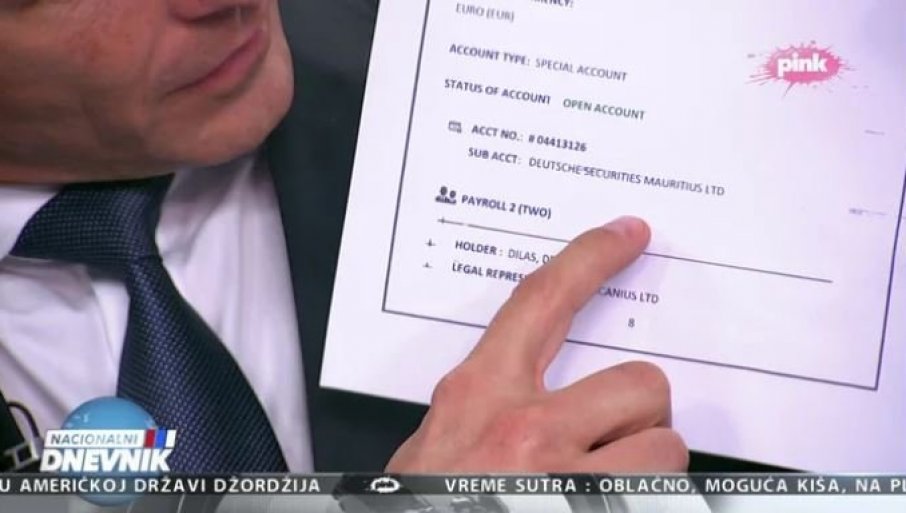 U VEČERAŠNjEM specijalnom izdanju Nacionalnog dnevnika na televiziji "Pink" govorilo se o aferi Mauricijus i ekskluzivnim saznanjima o Đilasovim računima na Mauricijusu i u Švajcarskoj, do kojih su došle "Večernje novosti".