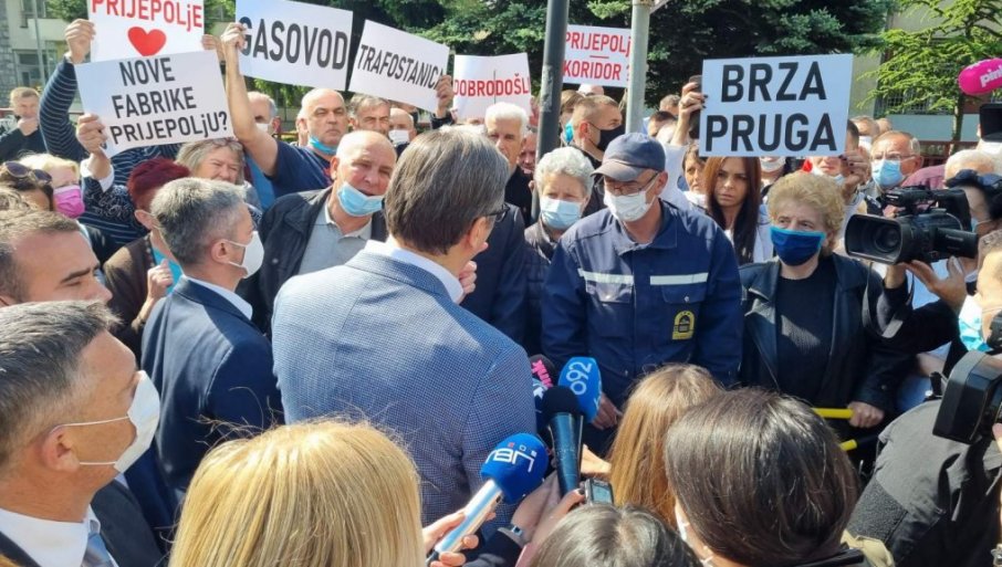Predsednik je stigao u Prijepolje, gde trenutno razgovara sa građanima o izgradnji lokalnih puteva.