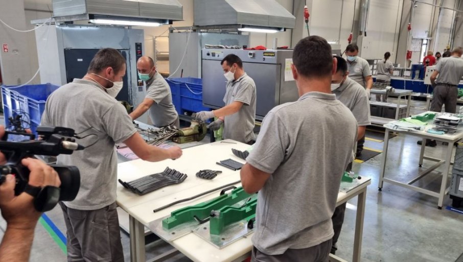 Vučić razgovara sa zaposlenima u fabrici, gde je 70 odsto žena. Objekat ima 6.300 kvadrata. Ovde, kako kaže Vučić, postoji kultura automobilske industrije. - Težak je to hleb, ali sigurna budućnost za svaku porodicu - rekao je predsednik.