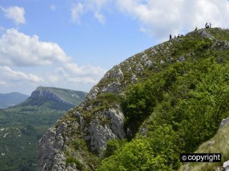 Posetioci se penju oko sat vremena strmom stazom do njegovog vrha Velikog krša na 1.148 metara s koga se pruža neverovatan pogled i zatim nastavljaju markiranom ravnom stazom po grebenu do sledećeg velikog "zuba" nad ponorom gde planduju.