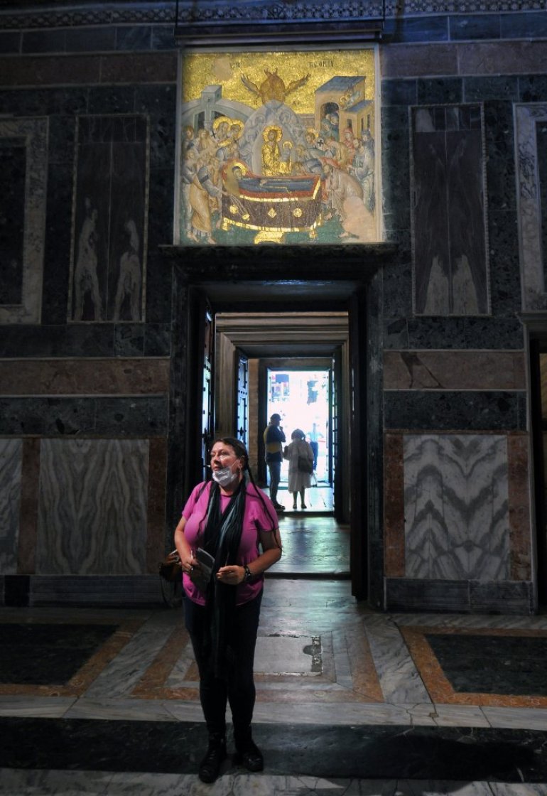 Mi molitvu u sebi nosimo, ona nosi nas, o Bogorodice moja - ispresecan je šapat ispod mozaika smrti Bogorodice.