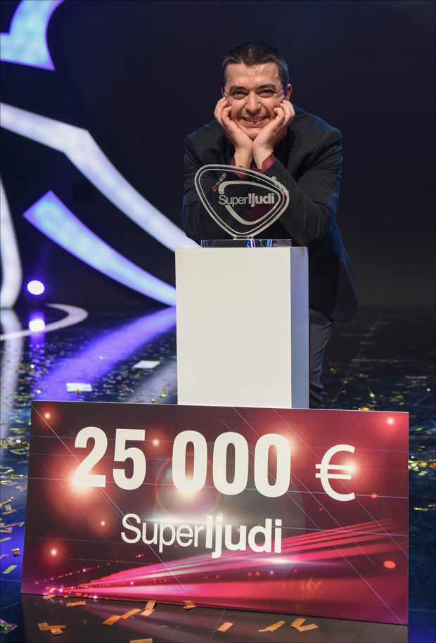 PRAVE "Superljude" počeli smo da upoznajemo u martu uz šou-program koji se četvrtkom emitovao na Prvoj od 21.00. Posle 12 nedelja, pobednika Darka Đorđevića je sinoć izglasala publika, dodelivši mu novčanu nagradu u iznosu od 25.000 evra. Vlasnik titule "superčovek" ima 36 godina, rođen je u Beogradu, oženjen je i ima decu. Darko radi kao podoficir u vojsci, a u slobodno vreme vežba neverovatni um. On je iznenadio sve prisutne sposobnošću da zapamti najsitnije detalje na ljudskim licima, a talenat rado prenosi na svoju decu.