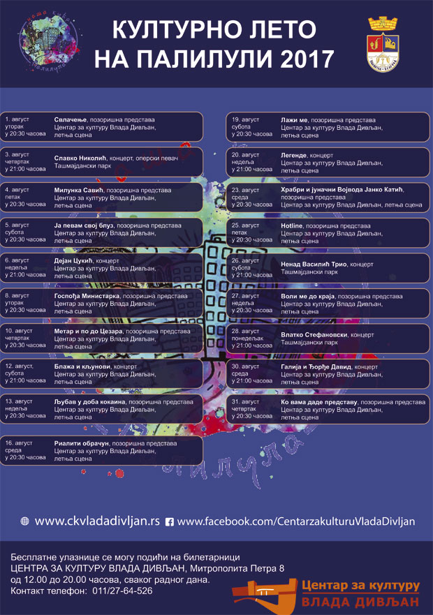 „Izdvojili smo sredstva iz budžeta za predstave i koncerte kako bismo našim sugrađanima učinili lepše i sadržajnije leto u Beogradu“, rekao je Jovičić i dodao da se vodilo računa i o onim građanima koji nisu u mogućnosti često da posećuju kulturna dešavanja u gradu, ali da će tokom avgusta to moći besplatno na Paliluli.