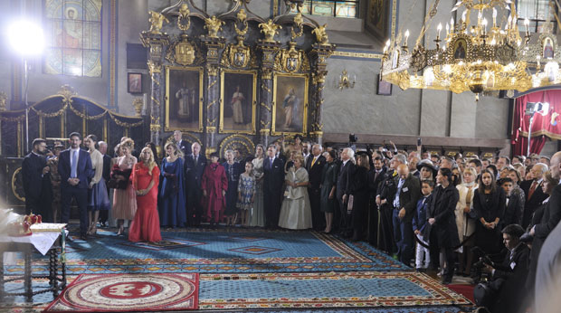 CEREMONIJI kraljevskog venčanja su prisustvovali španska kraljica Sofija, predstavnici kraljevskih porodica iz Grčke, Danske i Lihtenštajna, predsednica Narodne skupštine Maja Gojković, ambasador SAD u Srbiji Kajl Skot sa suprugom, predstavnici verskih zajednica i diplomatskog kora. Kum princa Filipa je njegov stariji brat Petar, a kuma je bila princeza Viktorija od Švedske.