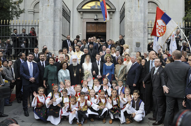 ZVONA Saborne crkve u Beogradu začula su se juče tačno u 15 časova, kada je Njegova svetost partrijarh srpski Irinej činodejstvovao venčanje kraljevića Filipa i princeze Danice Karađorđević. U Sabornu crkvu prvo je stigla mladoženjina porodica, roditelji - prestolonaslednik Aleksandar i princeza Marija, braća Aleksandar i Petar, princeze Linda, Katarina i Jelisaveta, mlada princeza je blistala u venčanici modne kreatorke Roksande Ilinčić, a do oltara ju je dopratio otac Milan Cile Marinković.