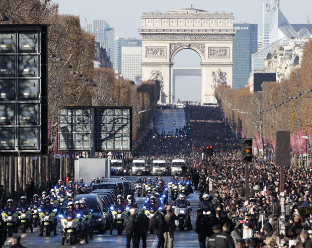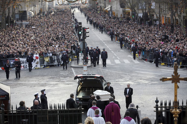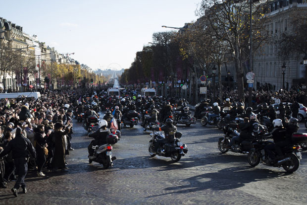 Pogrebnu povorku koja se spuštala niz “najlepšu aveniju na svetu”, od Trijumfalne kapije do Trga Konkord, pratilo je na motorima preko 700 bajkera. Ljudi su plakali, ali i pevali hitove Džonija Holideja, praćeni njegovim muzičarima.