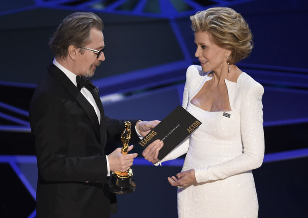 Izuzetno cenjeni glumac Geri Oldman konačno je dobio svoj prvi Oskar, za ulogu Vinstona Čerčila u filmu "Najmračniji čas". On je zahvalio svojoj majci koja ima 98 godina i našalio se da je "starija i od Oskara".