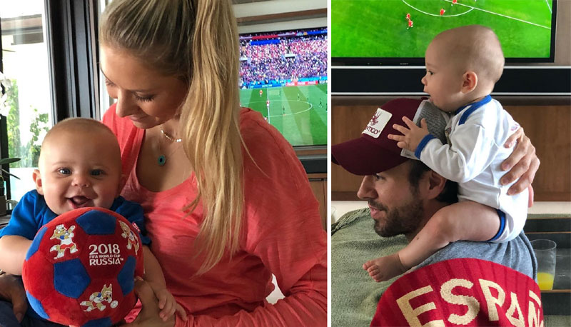 Enrike je, pak, okačio fotografiju na kojoj nosi bebu na krkače, ali i ćebence na kom piše “Španija”. Za to vreme, na televiziji se vidi utakmica između Španije i Portugalije. Pop zvezda i sportistkinja zajedno su 17 godina, nakon što su se zaljubili jedno u drugo na snimanju Enrikeovog spota “Escape”. Nije poznato da li su se venčali, a blizance su dobili 16. decembra prošle godine.