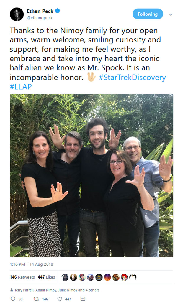 "Itan Pek je došao na audiciju sa svim tim kvalitetima, svestan svoje odgovornosti koju ima prema Leonardu, Zeku i prema fanovima, i spreman da odgovori na taj izazov i zaštiti Spokovo nasleđe. Zato smo oduševljeni što možemo da mu poželimo dobrodošlicu u našu porodicu", istakao je on.