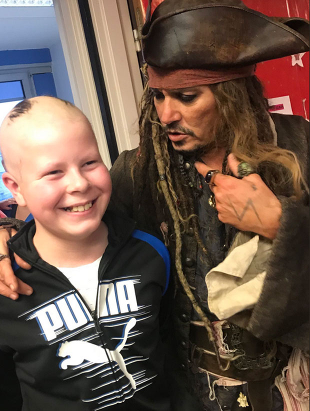 Američki glumac Džoni Dep ponovo je obukao kostim čuvenog piratskog kapetana Džeka Speroua, s crnim krejonom oko očiju i rukama prekrivenim prstenjem za iznenadnu posadu mladim pacijentima u Institutu Kiri u Parizu