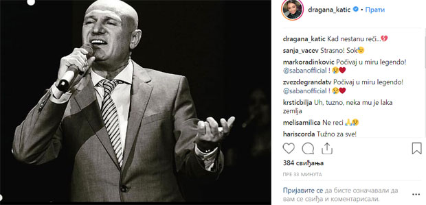 "Iskreno saučešće porodici Šabana Šaulića. Srbija je ostala bez legende narodne muzike", napisala je Brnabić na svom Tviter nalogu.