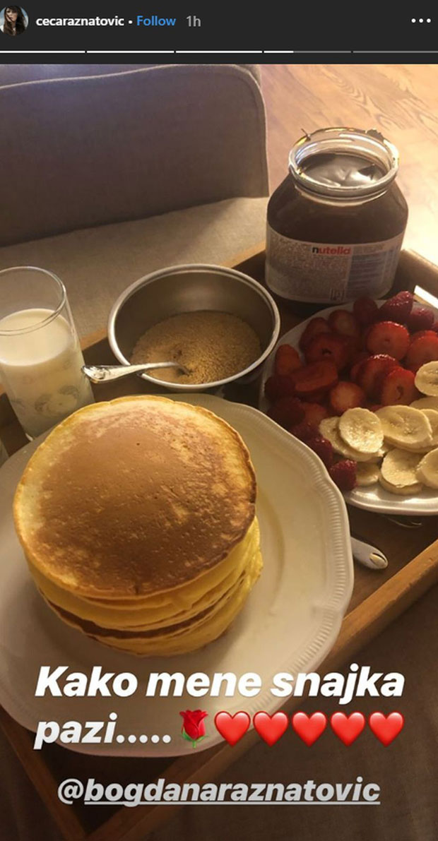 Tačnije, Bogdana joj je pripremila desert u vidu palačinki i voća, pa se pevačica pohvalila kako je snajka odlično pazi.