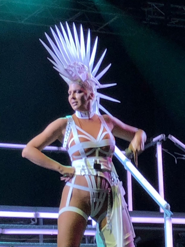 Pevačica je na sebi imala seksi kostim prepun belih tračica, a ono što je primetno jeste da na sebi nema gaćice. Ono što je iznenadilo mnoge je to da je na festival dovela i svoje dve ćerke Niku i Atinu.