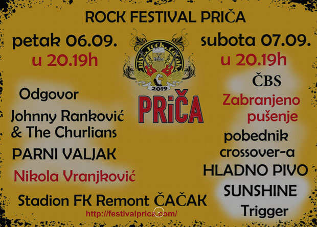 Da PriČa postaje najozbiljniji rok festival na ovim prostorima svedoči program zvaničnog prvog festivalskog dana 6. septembra, u 20:19, i to na stadionu vFK Remont u Čačku, kada će nastupiti čačanski bend Odgovor, a publika će imati priliku da uživa uz Džonija Rankovića i Dečurliju iz Beograda sa specijalnim gostom Žikom Jelićem iz JU grupe, kao i Nikolim Vrankovićem. Nakon njih nastupiće legendarni bend Parni valjak, i Plej, kao bend iznenađenja.