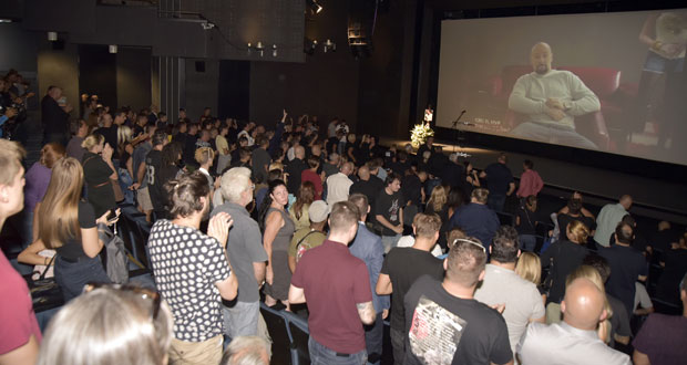 Venac belih ruža ispod Gruove slike sa florom, na bini, bolno je podsećao na reperovu smrt, dok su se na velikom platnu smenjivali kadrovi iz njegovih spotova, kao i fotografije snimljene u poslednje vreme. Sa svih su plenili Gruov prepoznatljiv osmeh i vedrina pogleda, optimizam koji ga je krasio tokom celog života.