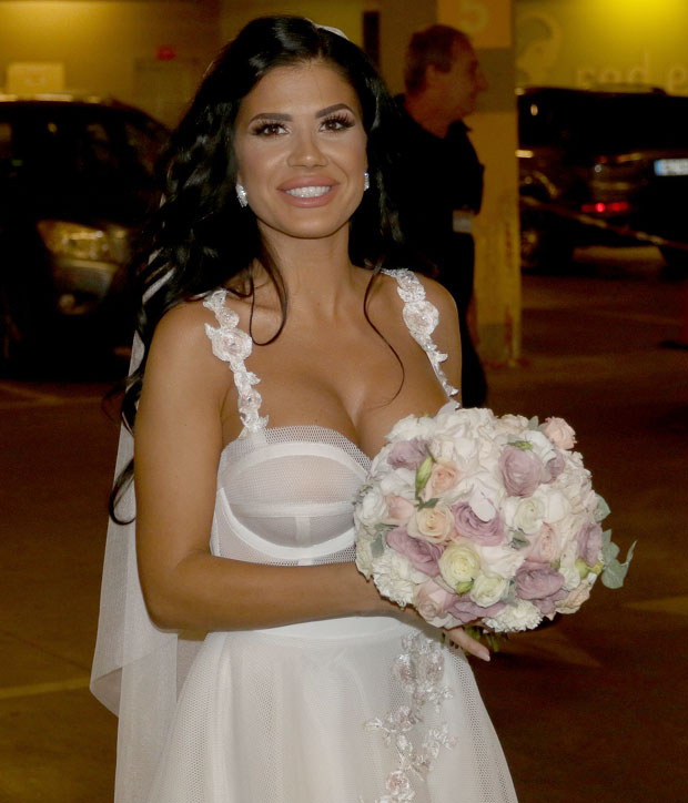 Katarina se odlučila za belu venčanicu izrazito dubokog dekoltea, dok je Ljuba u crnom odelu i beloj košulji