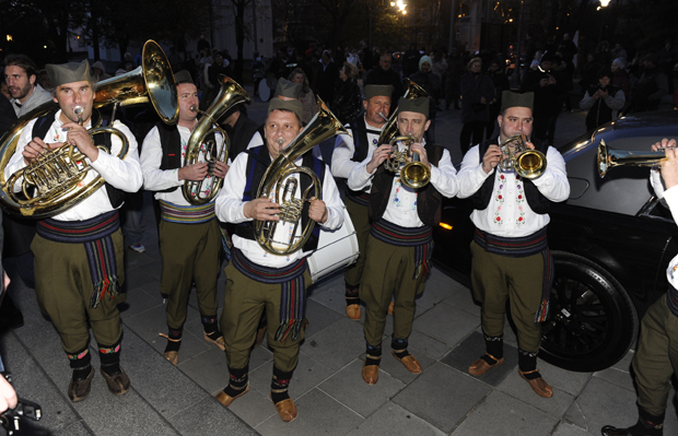 Mladenci će zakleti na večnu ljubav u kripti hrama Svetog Save. Ispred hrama su trubači u narodnim nošnjama, mogobrojne reporterske ekipe, okupljeni građani.