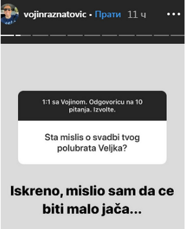 Mnogi su nakon svadbe upravo čekali baš njegov komentar, a Vojin je upravo na svom Instagram nalogu u dva odogovora prokomentarisao svadbu kako su je neki okarakterisali decenije.